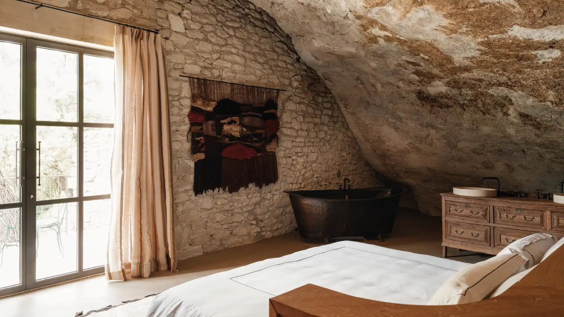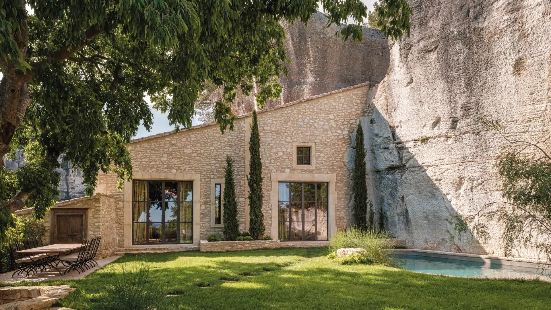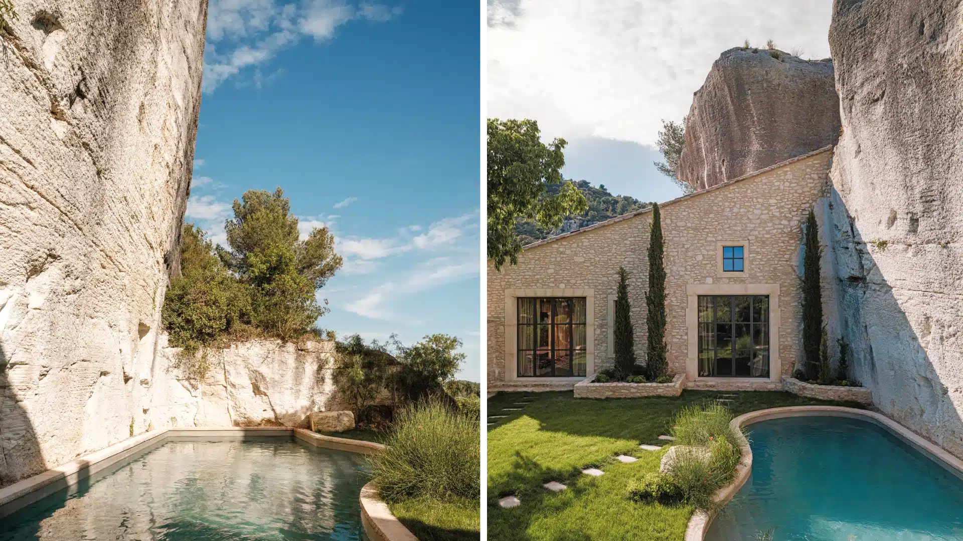 Sculptée dans la roche et sublimée par une rénovation élégante, elle incarne un subtil équilibre entre authenticité provençale et luxe contemporain. Un lieu rare et confidentiel, à l’atmosphère minérale et chaleureuse, idéal pour une escapade hors du temps.