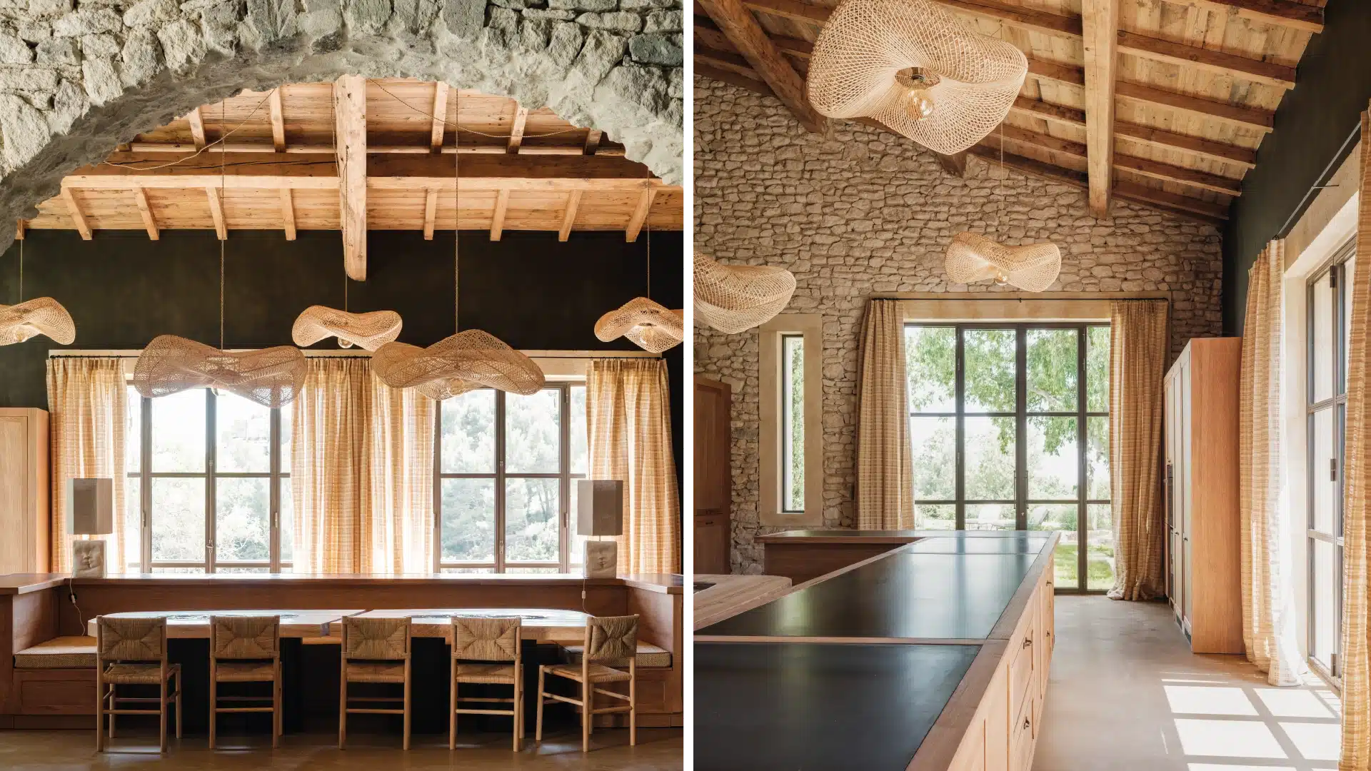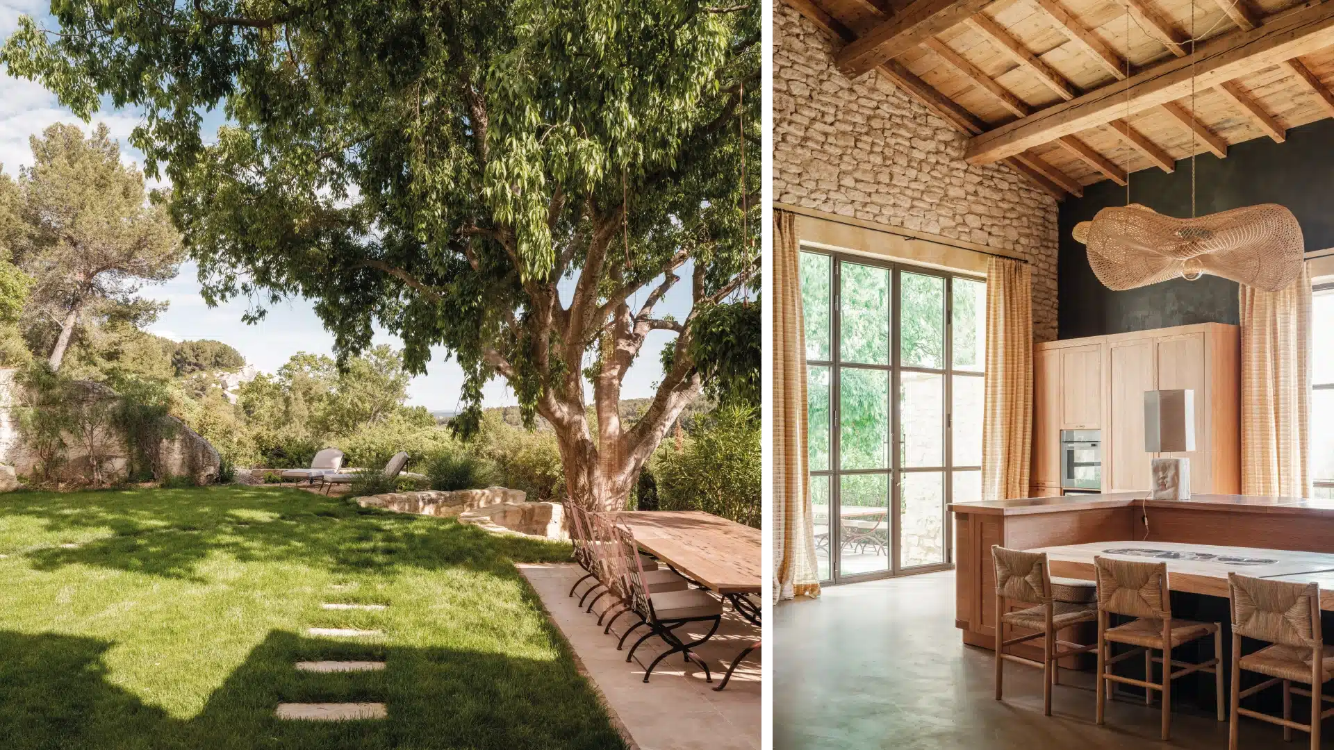 A large garden table invites outdoor dining while various shaded and sun-drenched areas have been thoughtfully arranged for relaxation. A peaceful and inspiring place designed to savor every moment.
